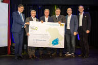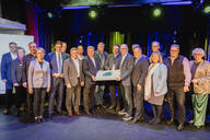 Symbolische Übergabe der MZM-Sprecherrolle: Münchens Oberbürgermeister Dieter Reiter übergibt den “Staffelstab” an Robert Niedergesäß, Landrat des Landkreises Ebersberg und Sprecher der MVV-Verbundlandkreise. © MVV GmbH (jpg, 1,73 MB)